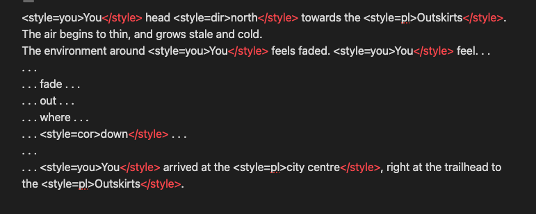The first step, of course, is writing. Most areas in the game require quite a lot of lines, but the unique nature of The Outskirts means that it only has one set of lines, as opposed to many other areas which have at least 5 times as many lines. All of my writing I do in an application called Obsidian.