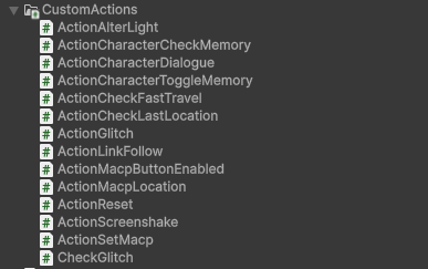 This lets me change the colour of the background whenever I want, which is really useful. However, in order to get this to work I had to build a custom action into Adventure Creator to change the colour in actionlists. I actually have quite a few custom actions that I’ve written over time to help me out with various functions for the game.